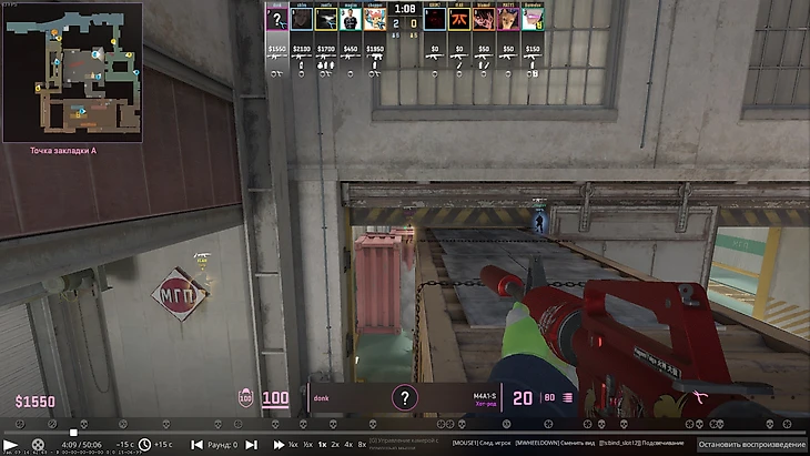 1. Агрессивный. Донк кидает «молотов» в мейн, иногда осколочную туда же, а потом бежит в верх-низ и вскоре закрывает эту позицию дымом. Так в начале раунда Даня тратит три гранаты из четырех (ну а для чего еще главному каэсеру мира нужны гранаты?). Дальше Донк чаще всего занимает позицию за трансформатором и ждет соперников из верх-низа.