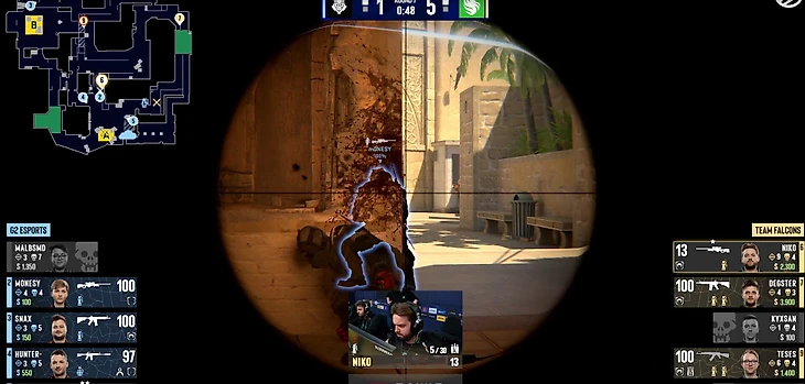 ● Пауза во время смены сторон на первой карте – первый коннект между игроками двух команд. Игроки G2 о чем-то переписывались с Нико и засмеялись. Веселились и Монеси, и сам Нико, и Снакс с Малбсом. А вот игроки Falcons были максимально сосредоточены.