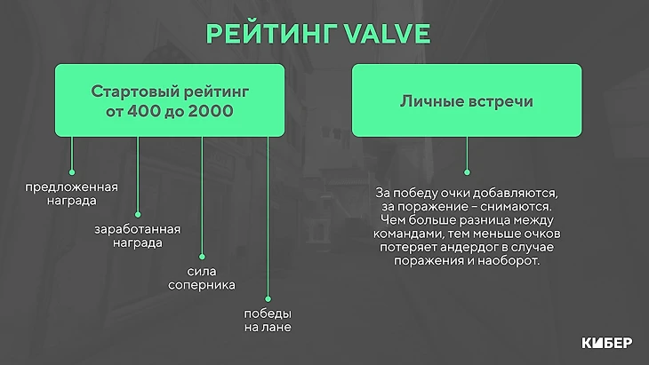 У каждой команды есть свой рейтинг. По итогам матча он корректируется. Фаворит за победу над андердогом получает минимум очков, так как он лишь подтверждает текущий уровень. Аналогичная история и со слабыми командами – за поражение против лидера система не снимет много баллов.