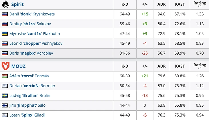 До этого “драконы” выходили в финал в каждом из последних четырёх турниров, в которых они участвовали (BLAST World Final, Shanghai Major, BLAST Bounty и IEM Katowice). Конечно, то, что Спириты дошли до полуфинала, нельзя назвать провалом, но многие любители киберспорта заметили, что именно во время этого матча игроки Team Spirit были особо эмоциональны. К сожалению, большую часть времени donk был в тильте, а magixx закончил матч с рейтингом 0.7.
