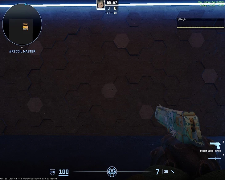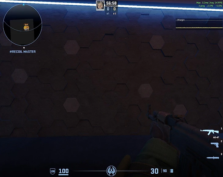 Рекрент играет с немного измененным Viewmodel. Расположение рук смещено максимально в угол экрана, чтобы сделать меньше слепых зон во время перестрелки.