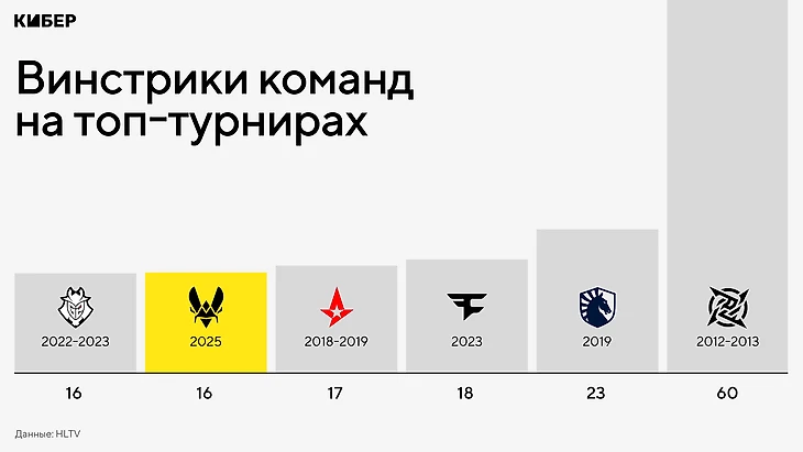 Аргументы «Да у них просто нет соперников» или «А это точно они сильнее всех, а не у других все плохо?» звучат всякий раз, когда в спорте появляется фаворит, забирающий турнир за турниром. Конечно, такие аргументы пренебрежительны и обесценивают усилия команды. В то же время уровень конкурентов – безусловно важный фактор, который нельзя игнорировать. Что с конкурентами у Vitality?
