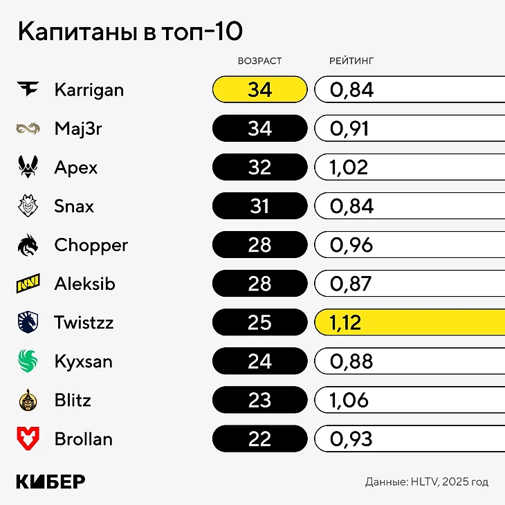 Даже 32-летний капитан Апекс с поправкой на роль играет приемлемо. Гораздо лучше Кэрригана, Алексиби, Мейджора – других возрастных капитанов из топ-10.