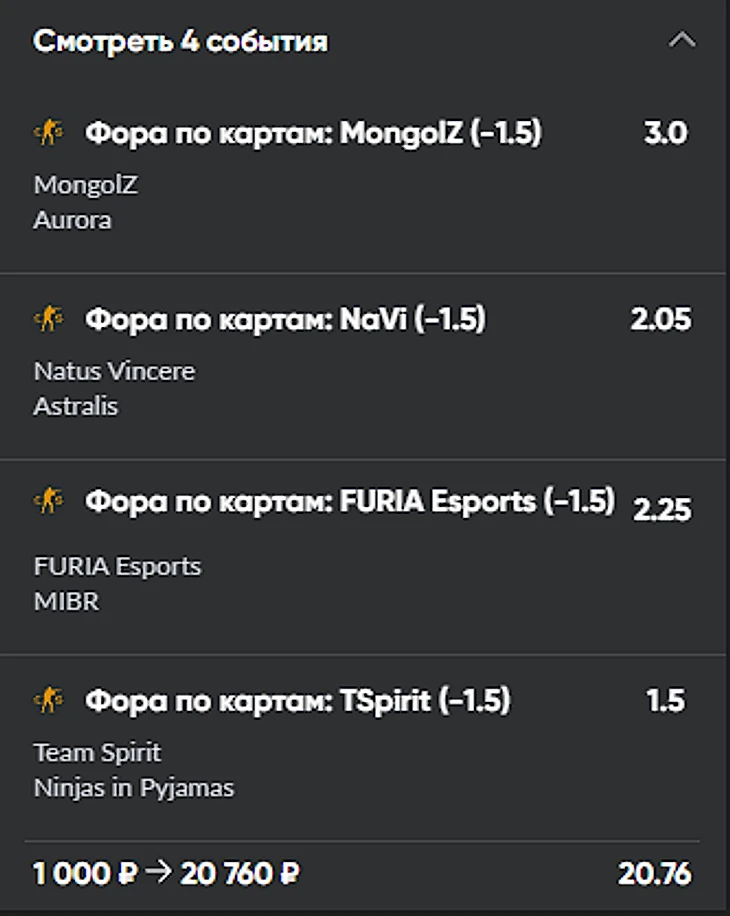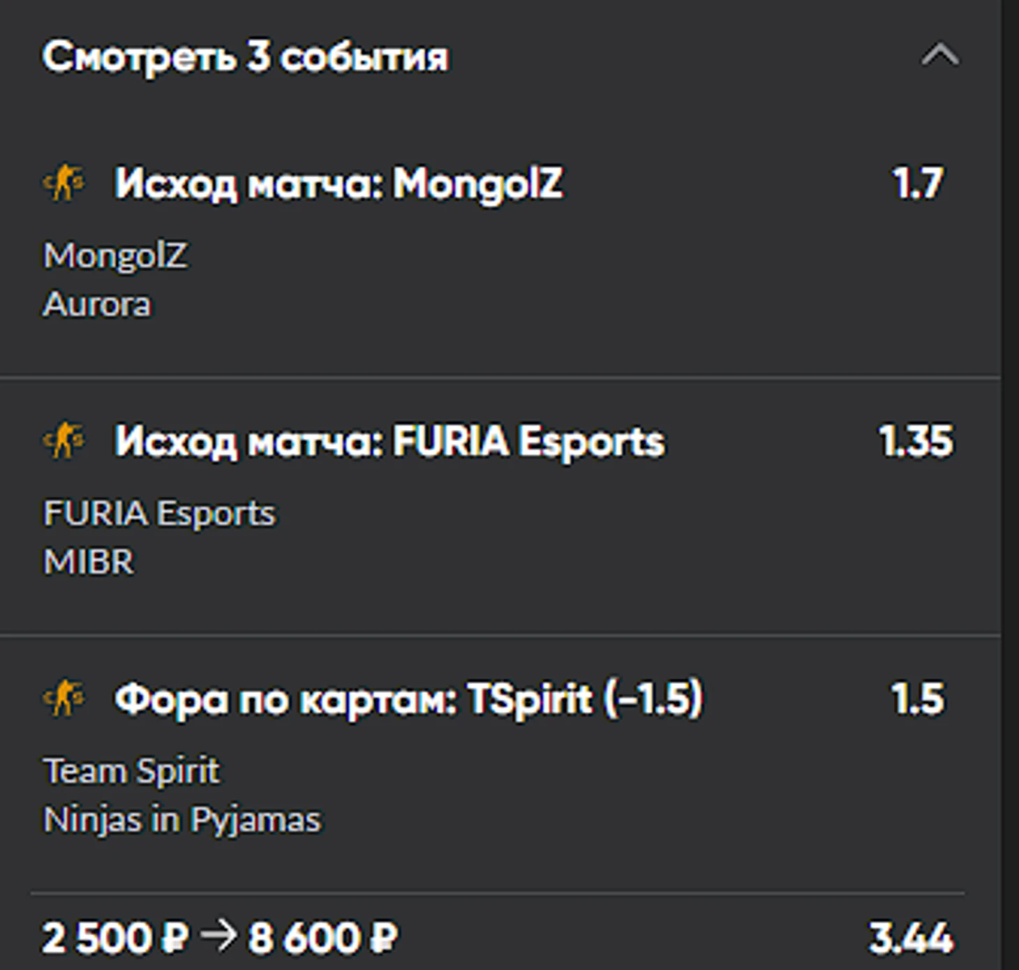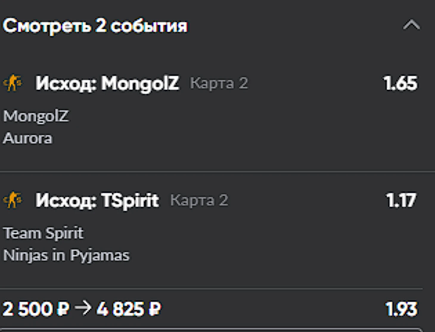 Экспресс#2. Общая Монголы + Фурия + Спирит 2-0 кф 3.44