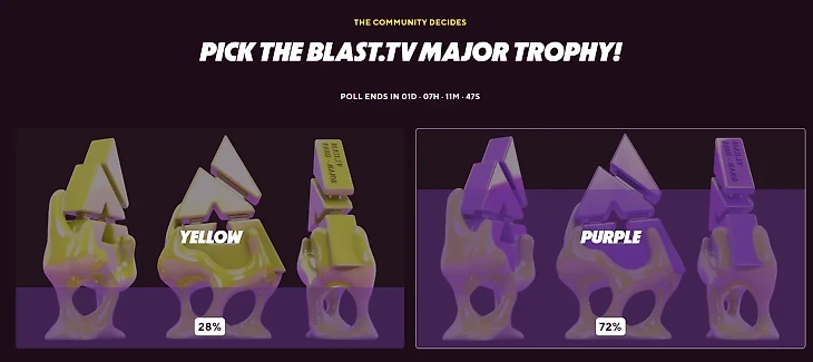 Главный символ BLAST – треугольник, который они вручают на всех своих турнирах с 2017 года. Он до сих пор зашит даже в логотип компании. Но на том мейджоре трофей изменили: сам треугольник стал сильно меньше, а вокруг него появилась какая-то жижа. Кто-то сравнивал ее с медом, а самые популярные комментарии на реддите – почему-то про сперму. Такой кубок выбрали сами фанаты, правда они не могли влиять на форму – организатор лишь дал выбрать цвет трофея: золотистый или фиолетовый.