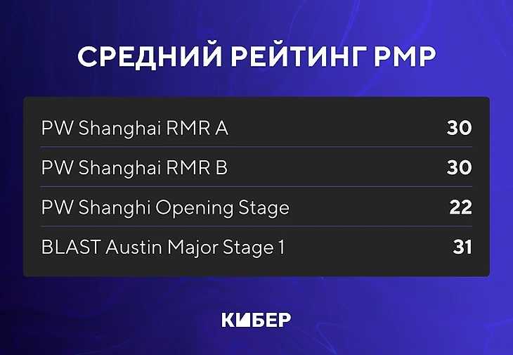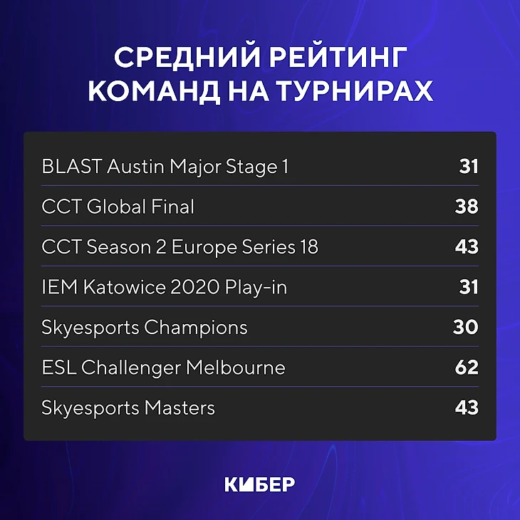 ● Наконец, у обычной команды на CCT Global Finals средний рейтинг – 38, что все еще ниже, чем на первой стадии BLAST Austin Major.