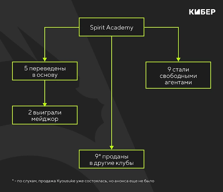 А в 2025 году Spirit находится в шаге от самого громкого трансфера в своей истории. По слухам, клуб продал перспективного Максима «Kyousuke» Лукина в Falcons из Саудовской Аравии за $2 миллиона.