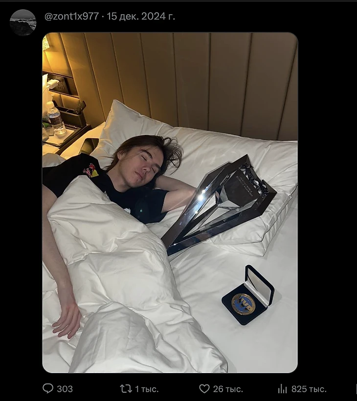 – Мирослав практически не ведет социальных сетей. Страница в инстаграме удалена, как и старая группа в VK. Личный профиль – закрыт, а доступные посты есть лишь в X. Туда Zont1x постит командные фотографии после побед на крупных турнирах без каких-либо подписей.