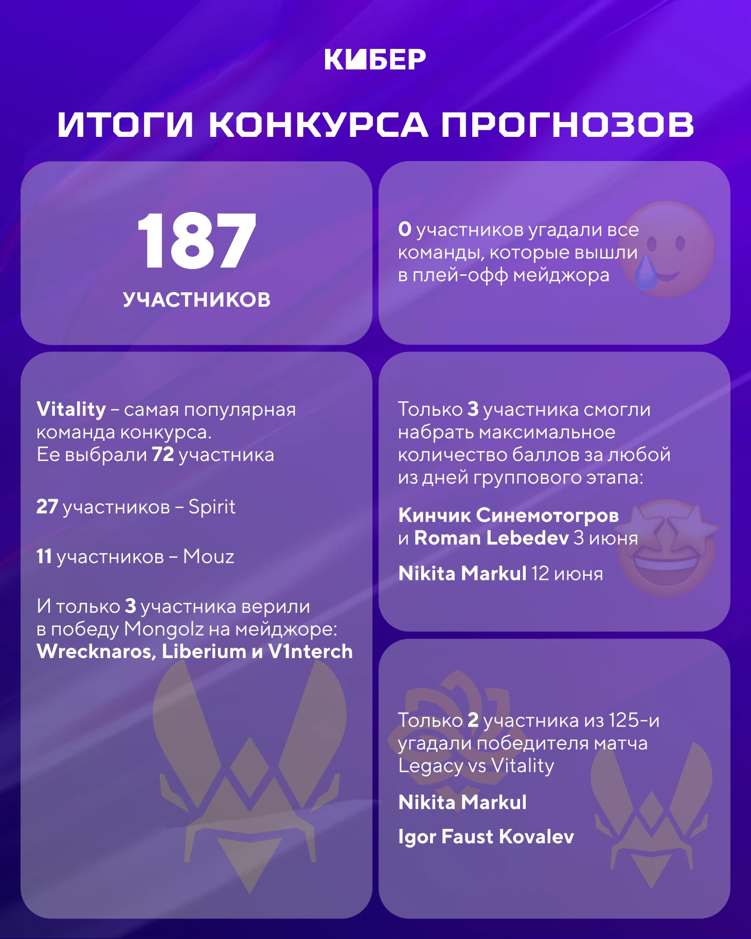 Привет! 22 июня закончился BLAST.tv Austin Major. К турниру Кибер снова запускал конкурс прогнозов.