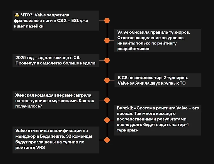 Также сокращается количество онлайн-квалификаций и более мелких ивентов. На 2025 год запланировано 77 турниров тир-B (сюда входят, например, LanDaLan, Fragedelphia или лига ESL Challenger), в 2024-м их было 85, а в 2023-м – 93.