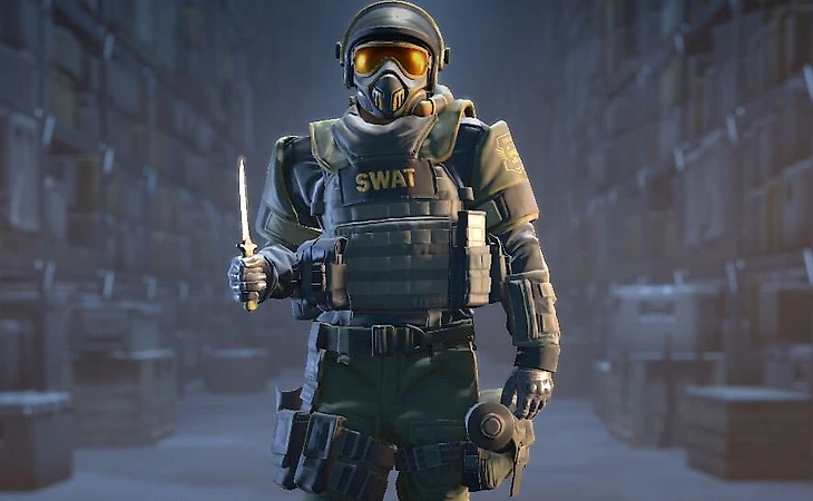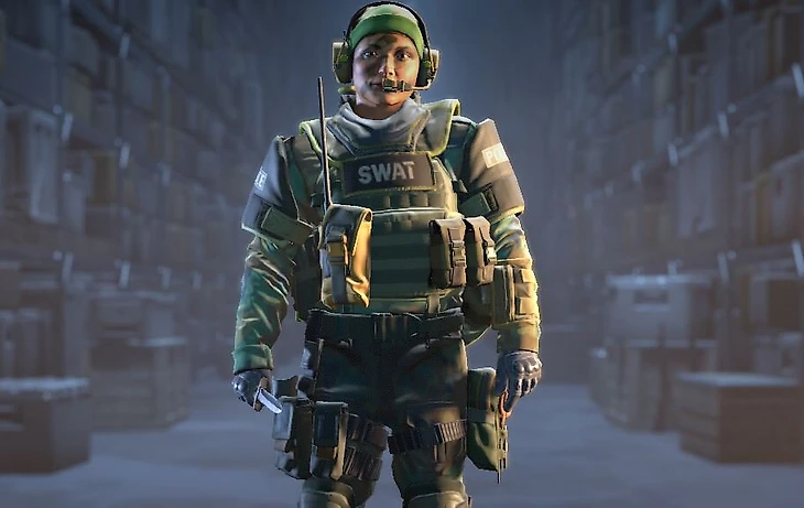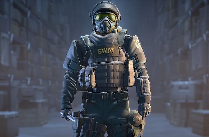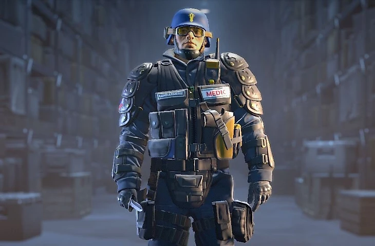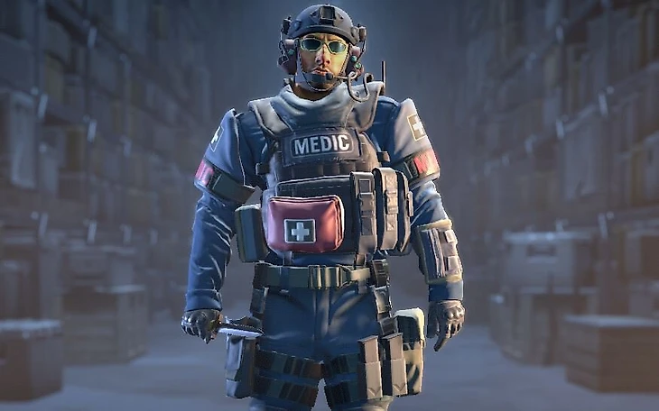 Голубой шлем, надпись «Medic» на груди. Один из самых больших агентов в контр страйк 2.