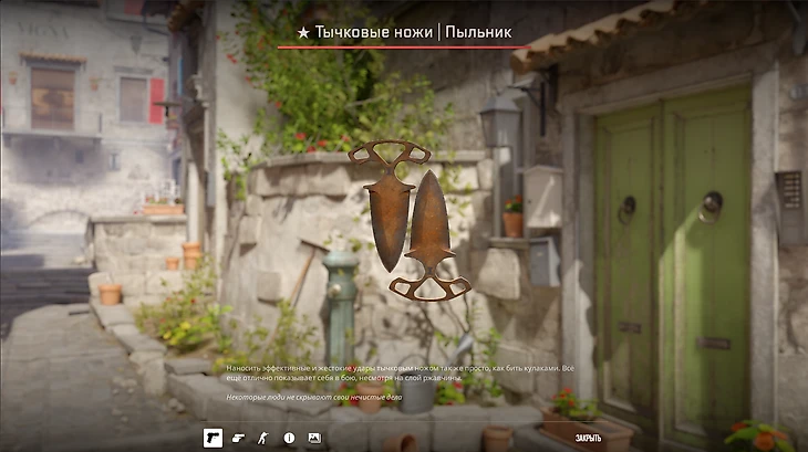 Уникальные ножи в CS – ведь их два. Но больше ничем интересным они не выделяются. Хотя интересен скин «Пыльник» – чем выше его износ, тем более старым и ржавым будет предмет. Поэтому такой недорогой нож отлично подойдет для инвентаря в духе «безумного макса».