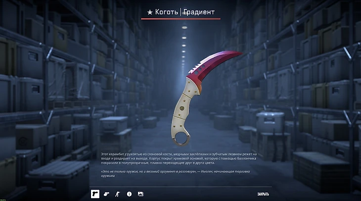 Этот нож олицетворяет CS. Возможно, сейчас лучший момент, чтобы забрать в инвентарь символ любимой игры в красивом исполнении.