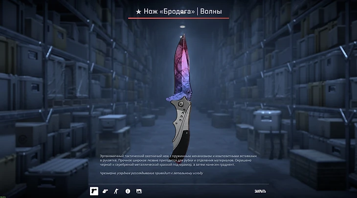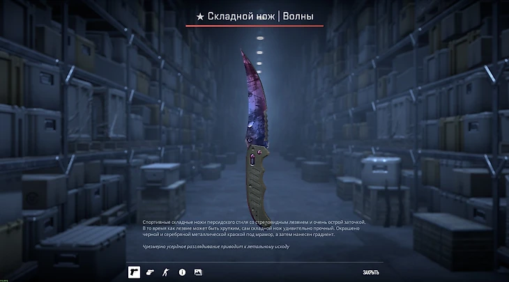 «Волны» популярны, но именно на этом ноже они смотрятся особенно красиво. Будьте осторожны, разглядывая заманчивые переливы – возможно, соперник уже плентит где-то на Б.