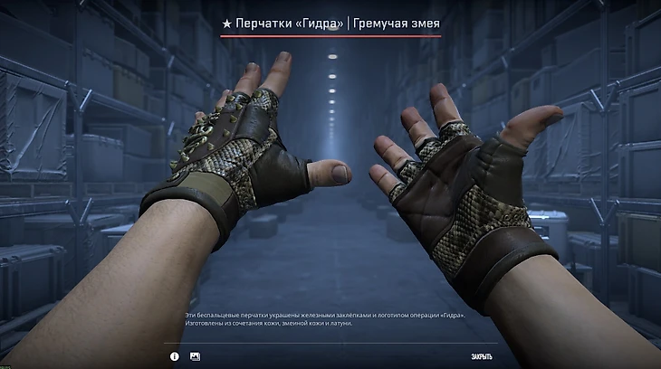 Забавный факт: самый дешевый скин на перчатки «Гидра» – тоже «Гремучая змея». Они отличаются только качеством: закаленный в боях предмет можно взять недорого, а вот за версию прямо с завода придется выложить в несколько раз больше.
