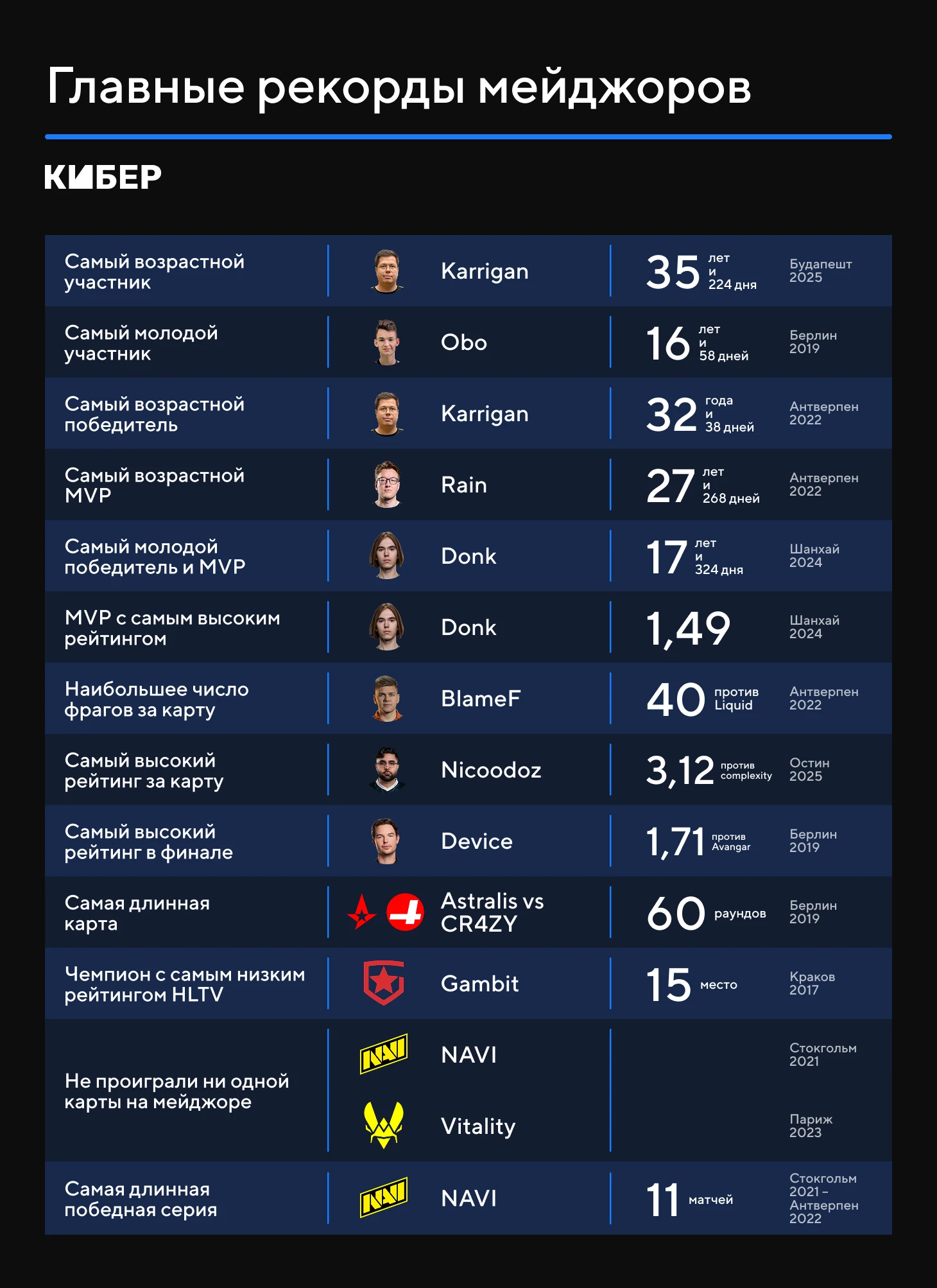 ● Самым молодым игроком в истории мейджоров является американец Obo: к старту мейджора в Берлине 2019 ему исполнилось всего 16 лет.