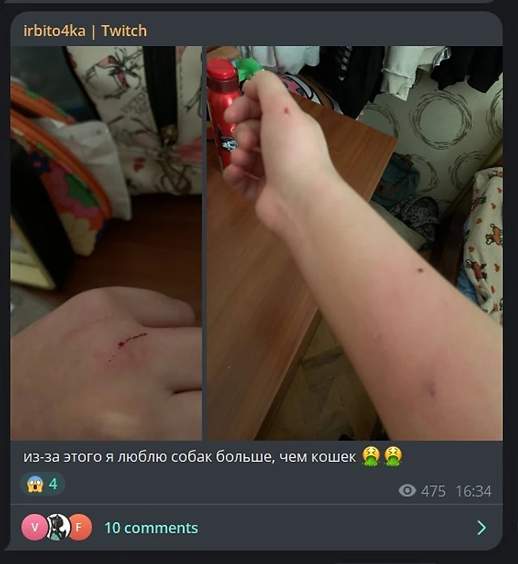 Она также призналась, что любит кошек меньше собак, показав царапины на своих руках: