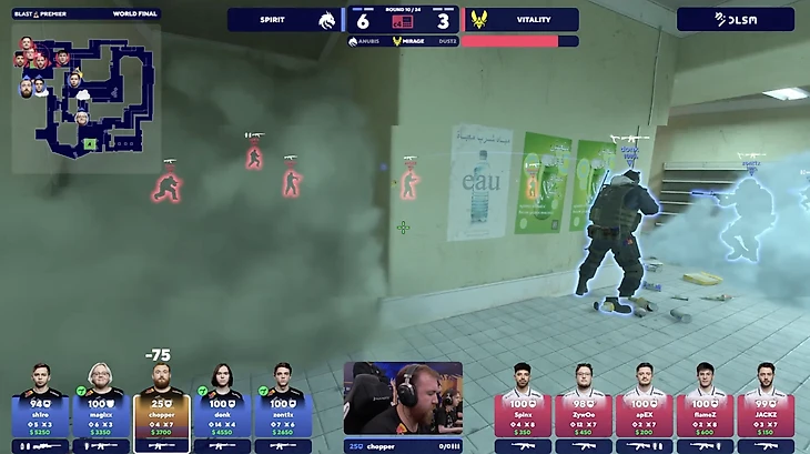 В первый день BLAST Premier World Final 2024 Team Spirit и Vitality играли в формате bo3. Spirit тогда победила на своем пике, карте Anubis, а на Mirage вела со счетом 6:3 в защите.