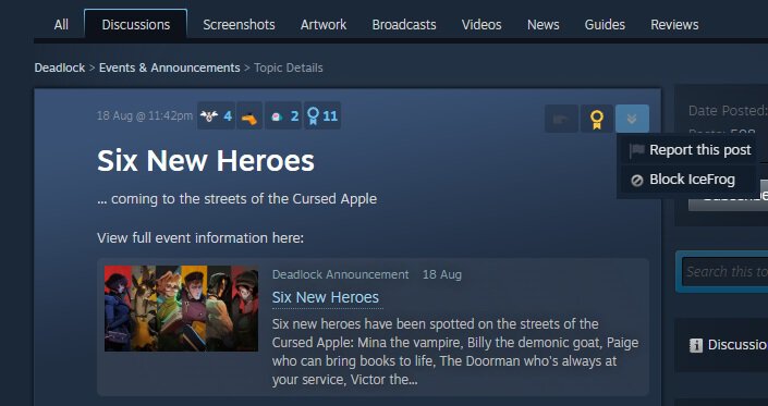 Ник Айсфрога увидели на посте с анонсом выхода шести новых героев в Steam.