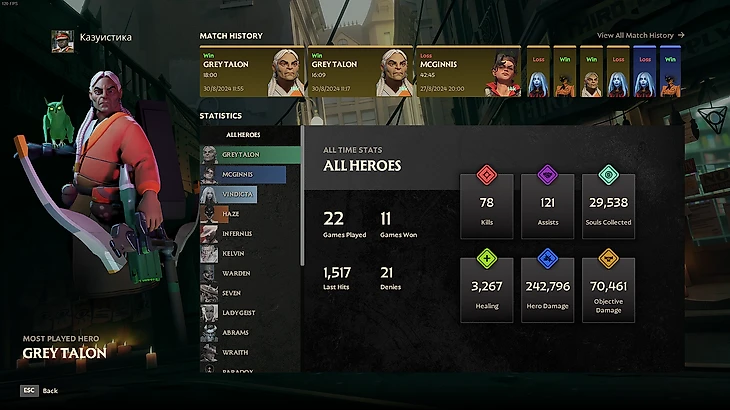 Новая страница профиля: Теперь игроки могут видеть детализированную статистику недавних матчей, а также общую статистику героев и игроков. Новые показатели, такие как «Собранные души» и «Лечение», теперь начинают засчитываться с нуля для всех игроков.