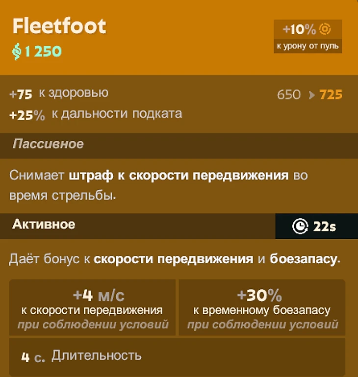 На стадии лайнинга, до 10 минуты, активок за 500 душ в магазине не представлено, поэтому стоит сразу рассмотреть один-единственный предмет за 1000 душ под названием «Fleetfoot», что дословно переводится как «Быстроногий».