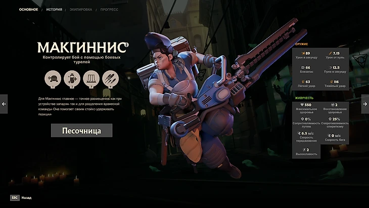 МакГиннес будет полезной даже в руках новичка. Многие игроки не обращают внимание на турели в бою – и очень зря. Основной урон героиня наносит через призываемых существ. Плюс больно бьет и с руки, а также ультимативной способностью. Стенка отлично подойдет для побега, а хилл увеличивает живучесть всем союзникам, в том числе и турелькам. Персонаж хорошо разгоняется в лейт.