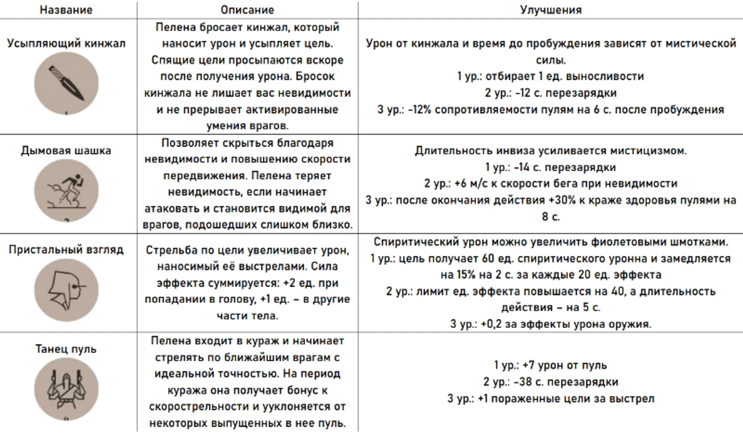 Кинжал и невидимость качаются по ситуации, если нужно больше контроля или побега. Представляем один из вариантов прокачки: