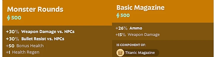 Враг давит, нужно очень быстро отпушивать пачку, а патронов не хватает? Тогда рекомендуем докупить Basic Magazine (Базовый магазин) и Monster Rounds (Чудовищные патроны).
