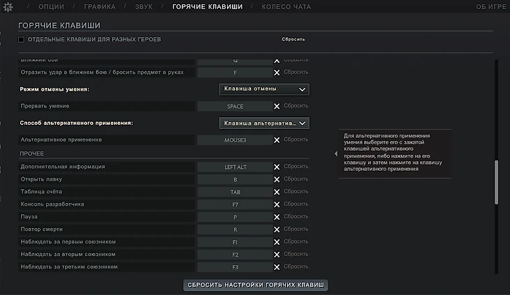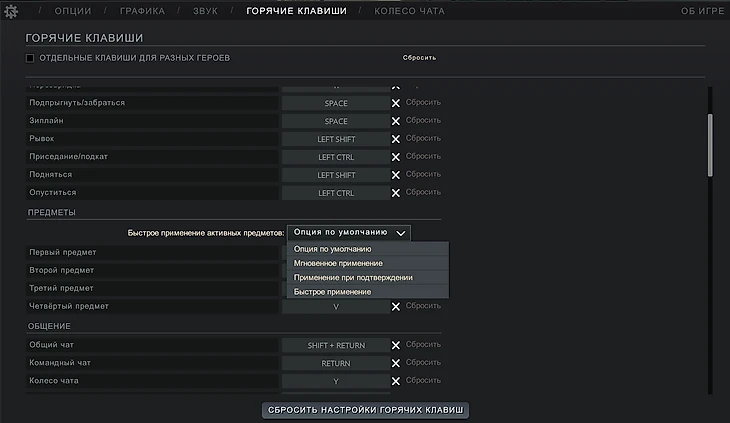 В последних патчах можно выбрать один из трех способов быстрого применения отдельно для предметов и способностей. Разрешают поменять скорость их использования в настройках, настроить разные кнопки под каждого героя.