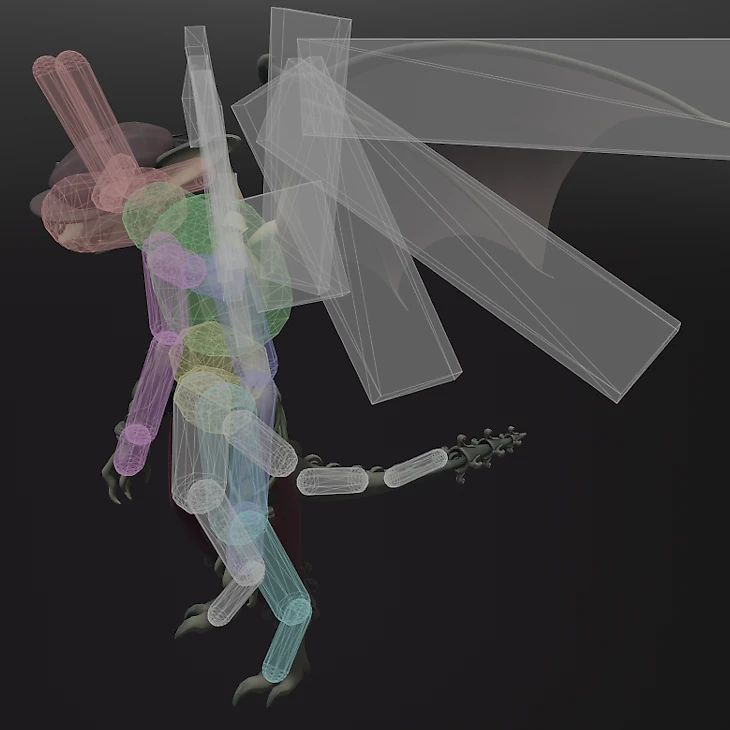 Хитбоксы выглядят немного жутковато. Это связано с особенностью строения головы горгульи и крылышками. Не до конца понятно, зачем ей сделали «рожки» – возможно, чтобы было легче попасть в голову.