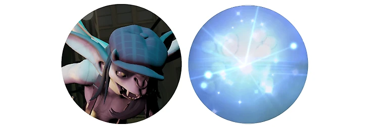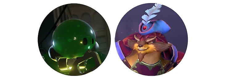Тоже идентичные ультимейты, только у Вязкуса другой визуальный стиль. Все-таки Желешка – морское глубоководное существо, а не броненосец, как Пангольер. Герой превращается в зеленый шарик и оглушает задетых врагов, хорошо ломает позиционку в драке.
