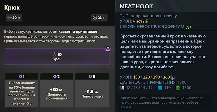 Сразу же вспоминается способность Бибопа под названием «Крюк» – один в один, как у легендарного Паджерса. Герой цепляет и притягивает к себе врага (героя или крипа).