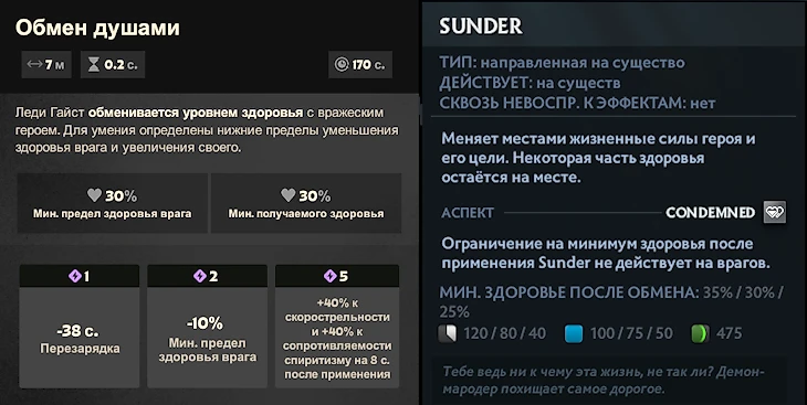 Призрачная Леди тратит здоровье в обмен на урон по врагам, а потом просто свапается с ними. Кстати, ТБ сейчас стали собирать в тройку, поэтому в текущей мете у героев больше общего, чем кажется на первый взгляд.