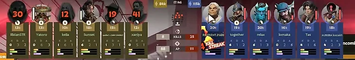 Видимо, сказались эмоции, усталость, слишком большой разброс по уровню игры. Против них были сильные игроки на метовых персонажах. В предпоследнем матче Sunset показательно украл усиление от Мид-босса на Ямато, но даже это не помогло переиграть Рекрентов.