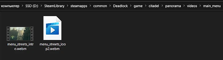 Внутри – два файла в формате WEBM. Первый отвечает за вступительный ролик, второй – фон главного меню.