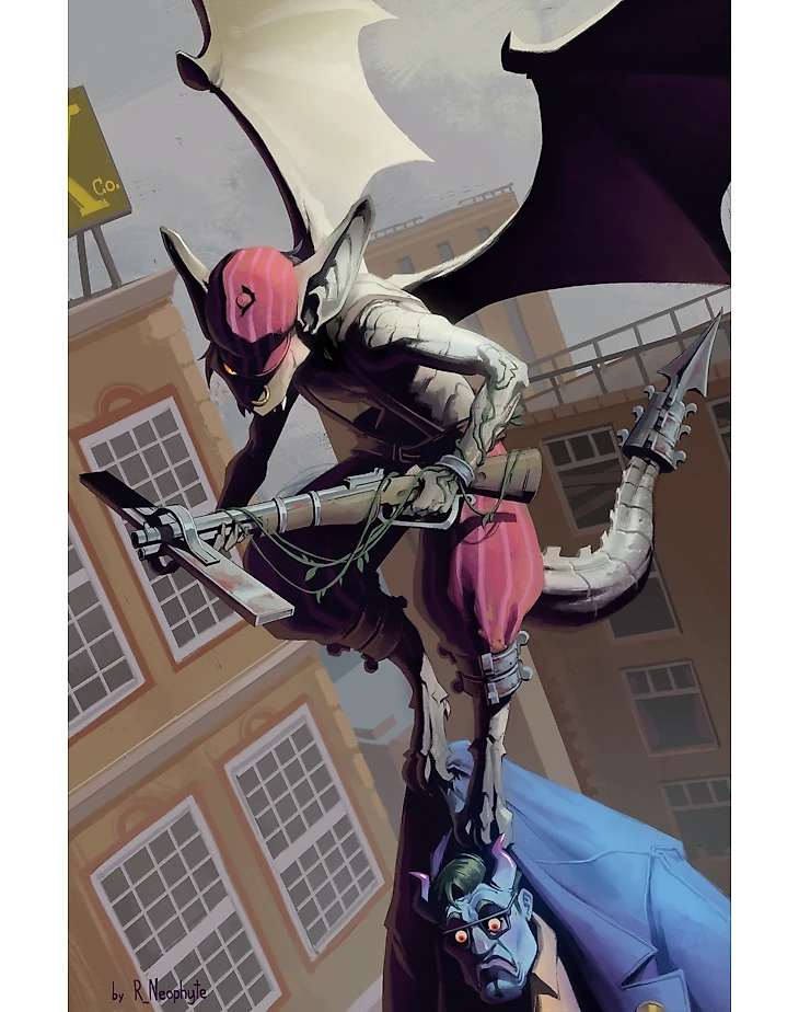 Несколько стильных рисунков хулиганистой юной горгульи. Отлично показан характер героини: иногда она миролюбиво пьет чаек за столом, пристает к Лэшу, просто кривляется. А если у Айви плохое настроение... ждите сюрприза с воздуха.