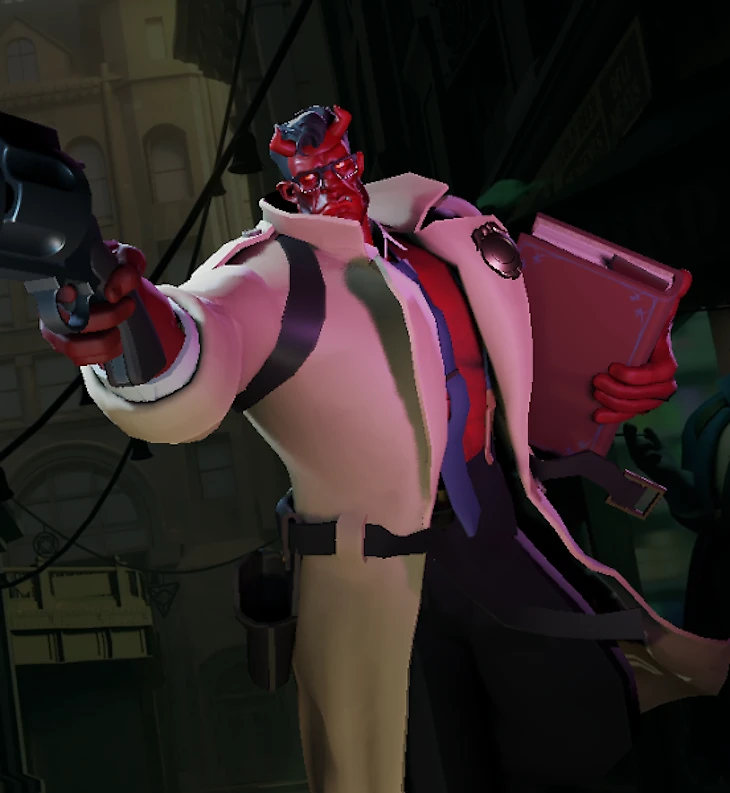 Очевидно сходство персонажа с героем комиксов Хеллбоем. Последний – тоже сверхъестественное существо, работает в Бюро паранормальных исследований и обороны. По факту этот мод только перекрашивает модель героя и убирает белую рубашку.