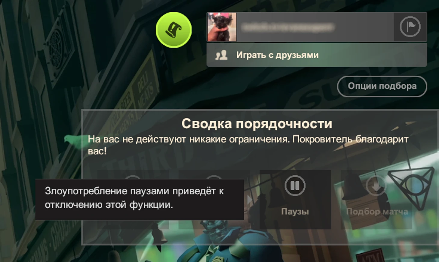Некоторым игрокам недостаточно ограничения на паузы, и они все равно злоупотребляют этой функцией. На этот случай разработчики ввели систему штрафов порядочности за чрезмерное использование пауз. Узнайте свой уровень репутации в верхнем правом углу в главном меню игры.