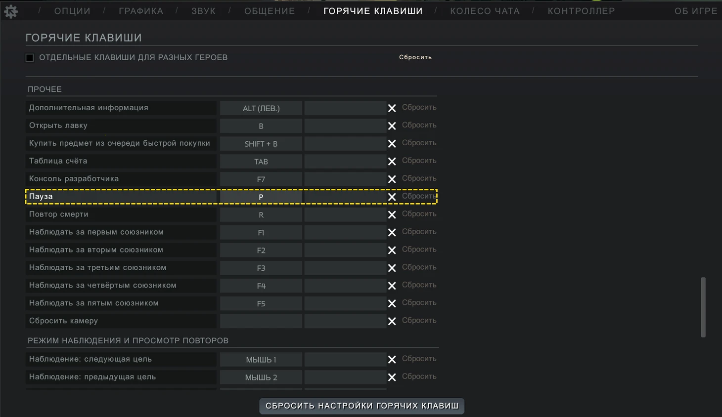 За паузу в игре по умолчанию отвечает кнопка «P», ее можно изменить в настройках во вкладке «Горячие клавиши». Во время паузы на экране появляется предупреждение с ником инициатора, а на верхней панели под игроком высвечивается соответствующий значок.