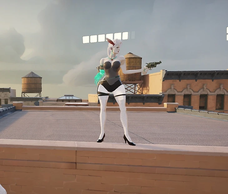 Мы уже рассказывали про этот скин. Меняет одежду призрачной снайперши на миниатюрное бикини, заметно округляет формы героини, а еще добавляет музыку во время полетов и стрельбы. Самое то для жаркого сражения.