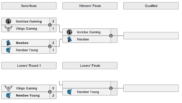 10:00 Newbee против Newbee Y – 2:1 10:00 Invictus Gaming vs. Wings – 2:1 12:30 Wings против Newbee Y – 0:2