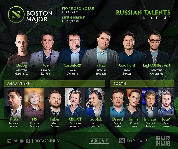 Определился состав комментаторов и аналитиков русскоязычной студии на турнир The Boston Major.