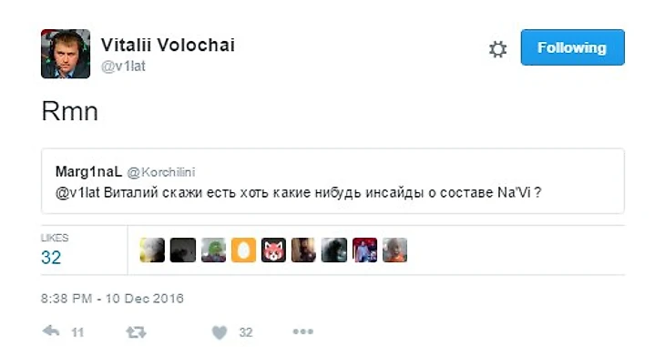 Комментатор Виталий «V1lat» Волочай, отвечая на вопросы в твиттере, намекнул на переход Романа «rmn» Палея в Natus Vincere.