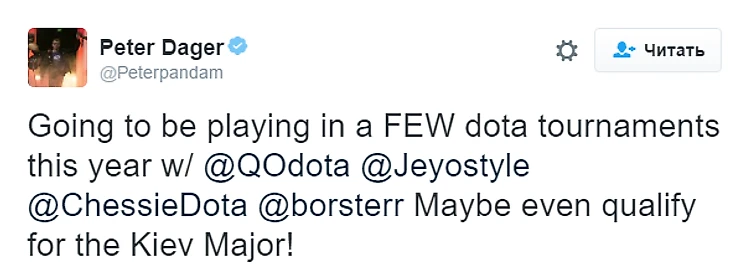 Питер «ppd» Дагер, бывший капитан Evil Geniuses, ныне являющийся исполнительным директором компании, написал в своем твиттере, что в этом году примет участие в нескольких турнирах, возможно, что и в квалификациях к киевскому мейджору.