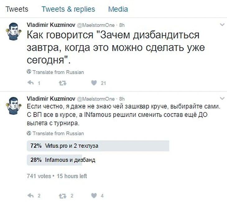 Комментатор студии RuHub Владимир «Maelstorm» Кузьминов поделился своим мнением о дизбанде команды Infamous. Команда была дисквалифицирована с квалификации на DAC и не приняла участие в матче против SG e-sports.