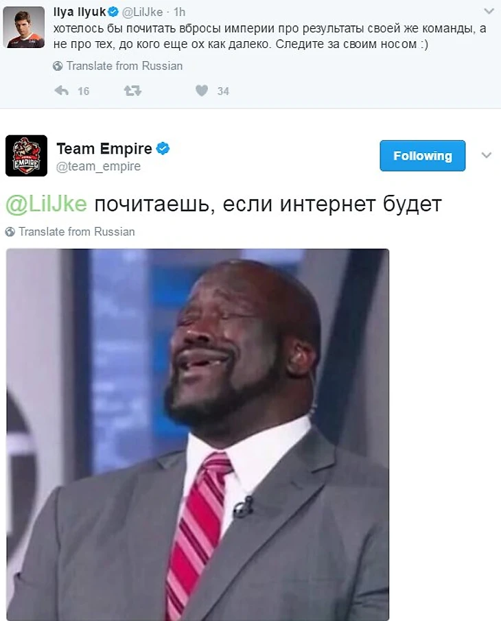 Игрок Virtus.pro Илья «Lil» Ильюк на своей странице ВКонтакте написал пост, в котором высказался об отношении сообщества к нему. Игрок сделал это после шутки в свой адрес от твиттера Team Empire.