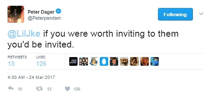 Этот твит прокомментировал генеральный директор Evil Geniuses Питер «ppd» Дагер, заявив, что если бы Virtus.pro стоила инвайта, то организаторы бы ее позвали.