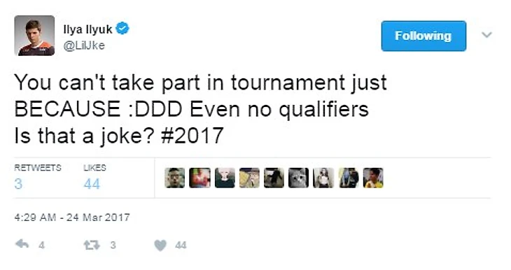 «Ты не можешь поучаствовать в турнире просто ПОТОМУ ЧТО! Даже нет квалификаций, это шутка?»
