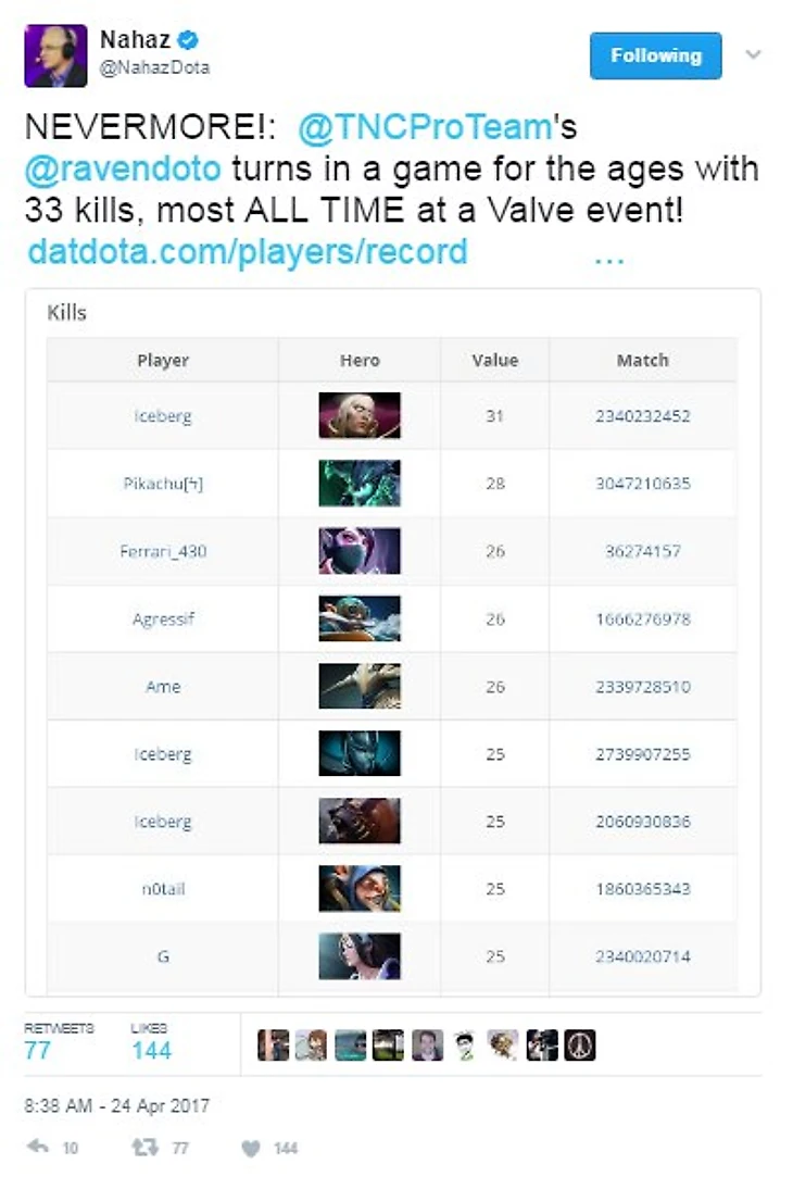 На второй карте матча против Thunderbirds игрок сделал 33 убийства на Spectre, побив тем самым рекорд Богдана «IceBerg» Василенко, который сделал 31 фраг на Invoker в матче между Team Spirit и Virtus.pro на квалификации к манильскому мейджору.