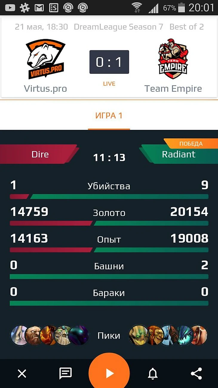 На момент написания «GG» преимущество Team Empire составляло около 6000 золота и 5000 опыта, а по убийствам счет был 2-9.
